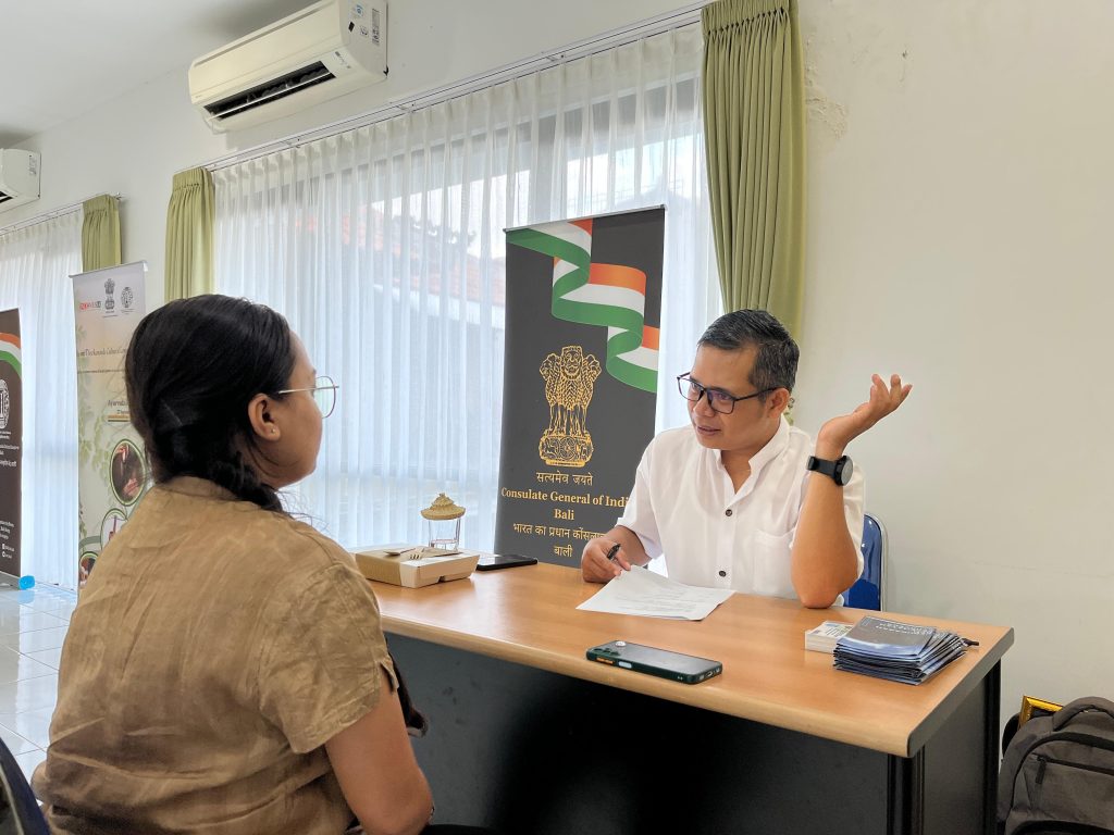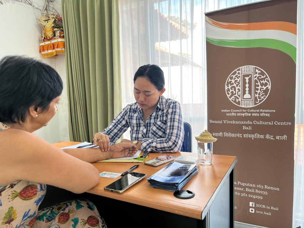 Perwakilan AVINDO, Dr. Komang Sumertawan BAMS dan Dr. Kadek Dwi Muras Mei Permatasari, BAMS, MS, turut memberikan layanan konsultasi Ayurveda kepada masyarakat Denpasar dan sekitarnya yang tertarik mengenal lebih dalam tentang kesehatan holistik berbasis kebijaksanaan India kuno ini.